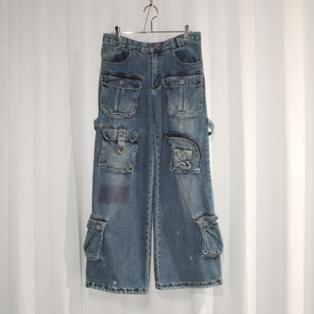 cargo design wide denim pants