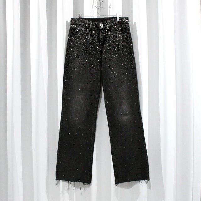 black color rhinestone baggy denim pants