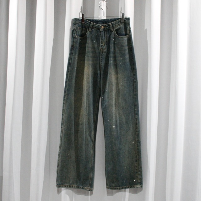 fade color rhinestone wide denim pants