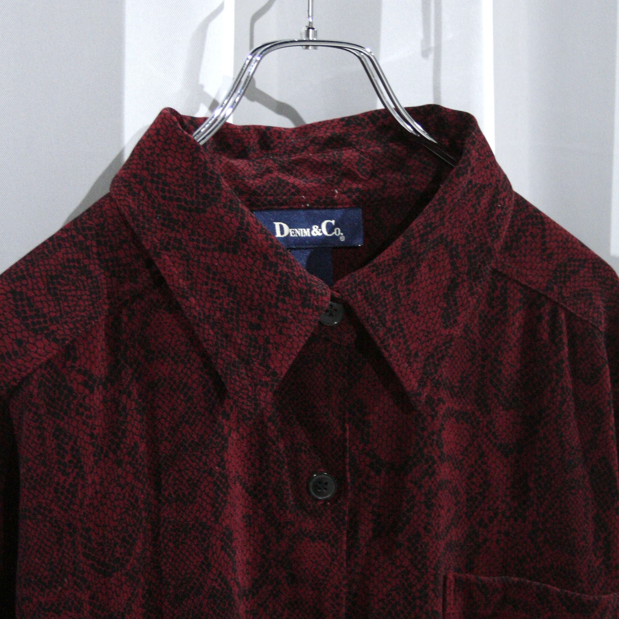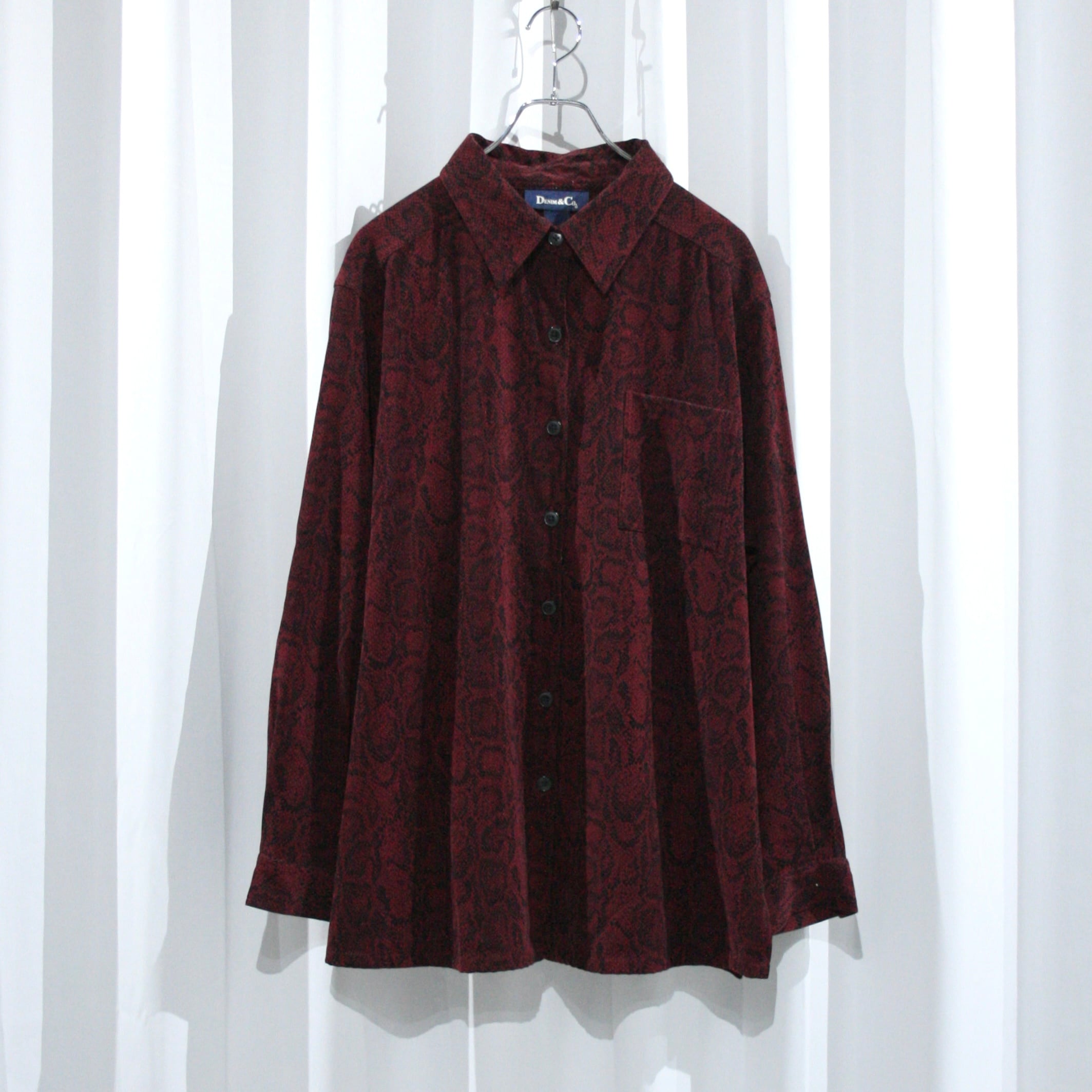 "Denim&Co" deep red python shirt