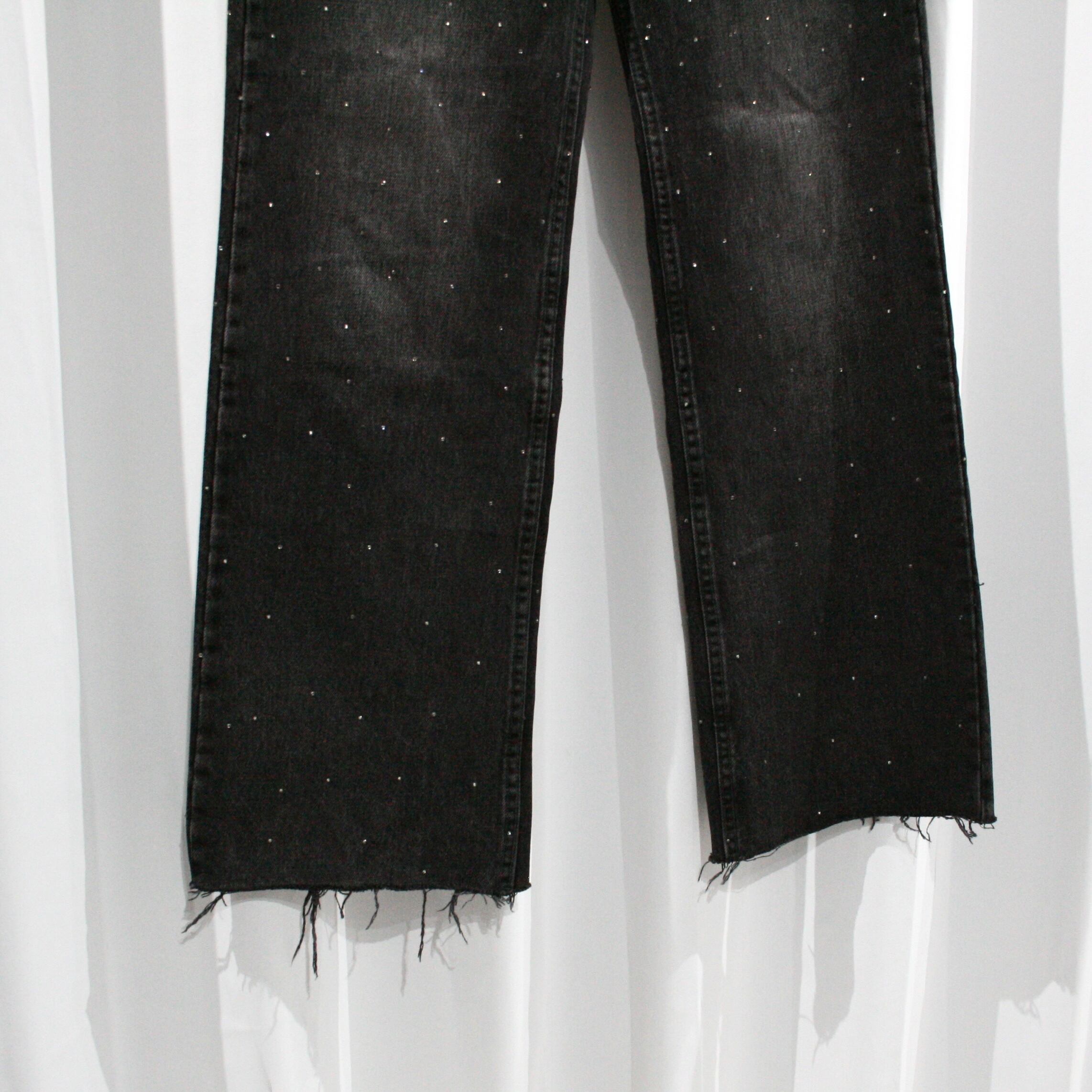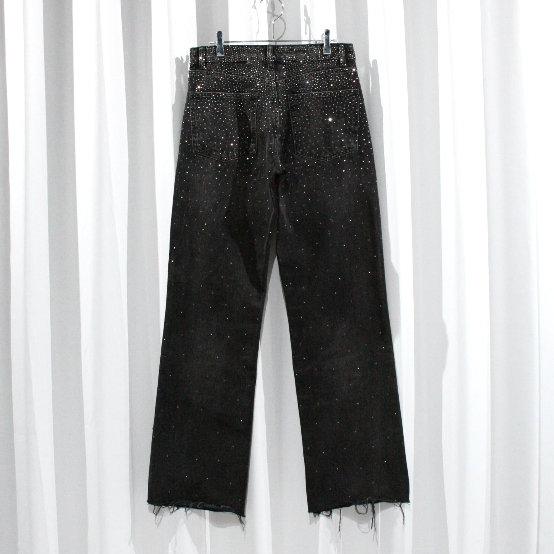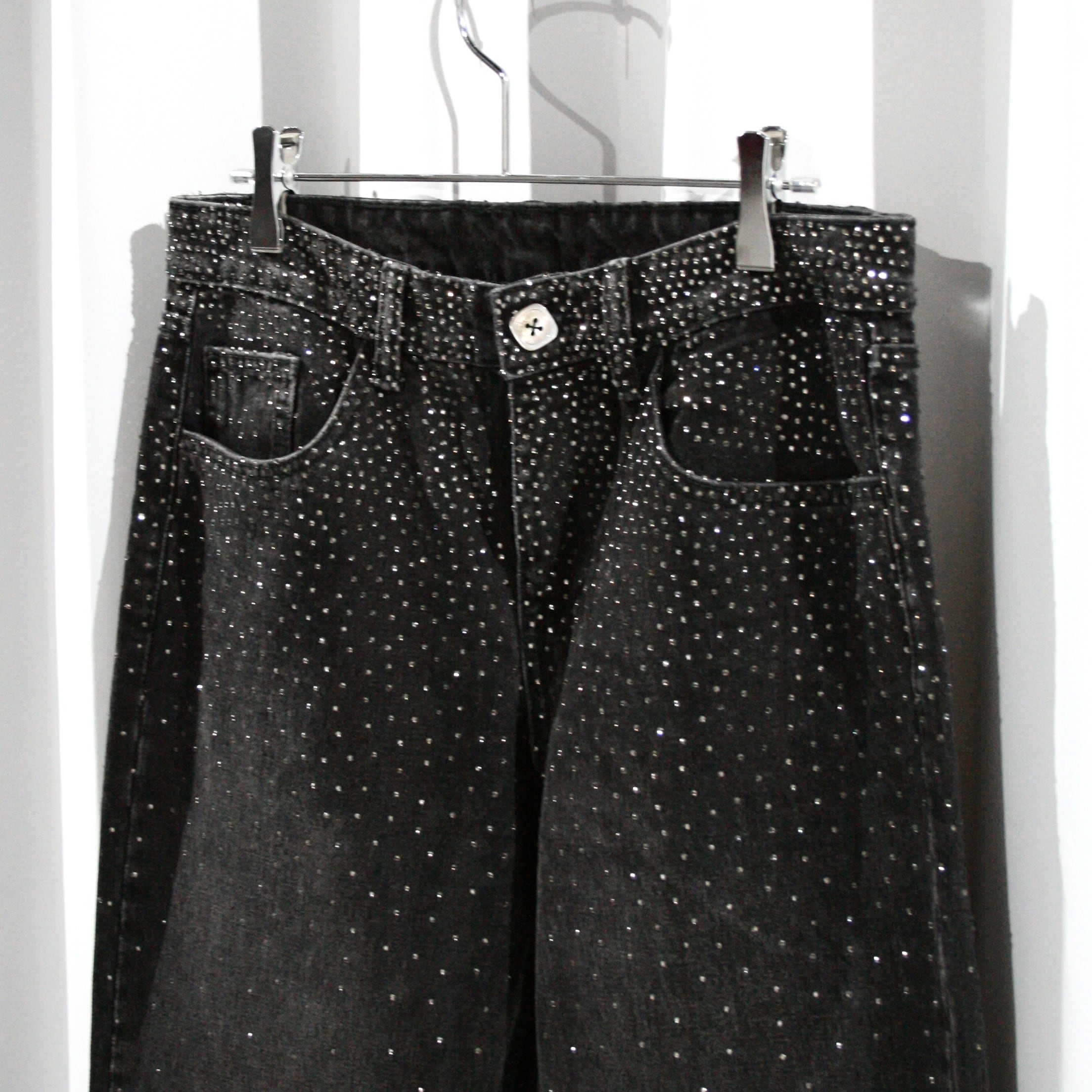 black color rhinestone baggy denim pants