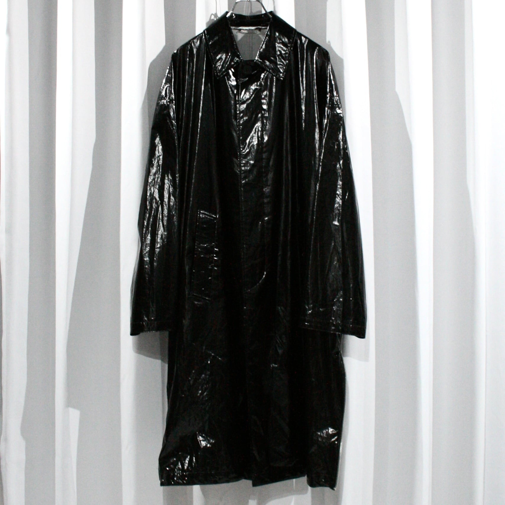 "JOHN LAWRENCE SULLIVAN" 22ss patent coated oversized side zip coat