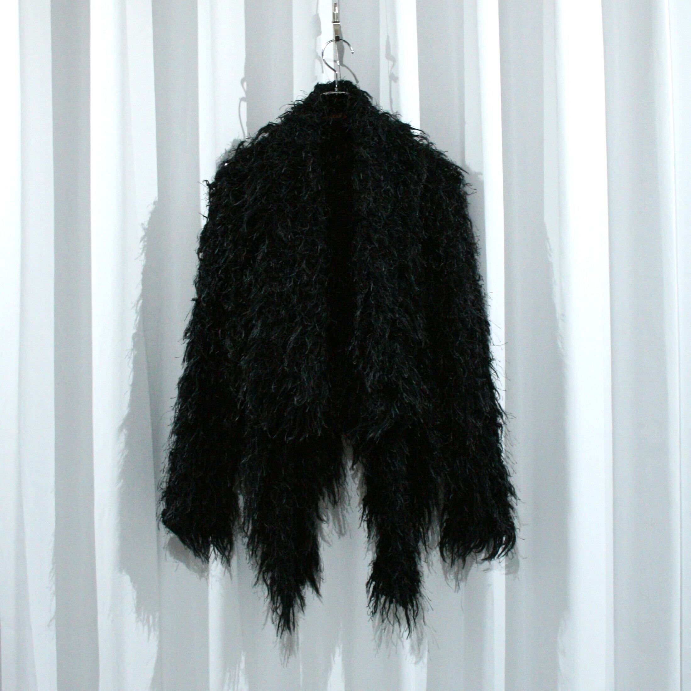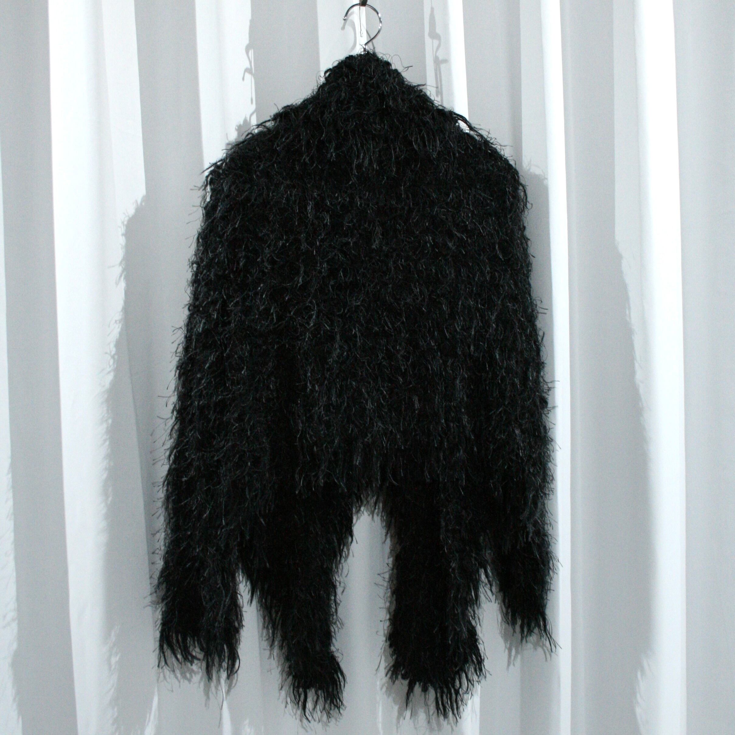 dark black shaggy textile layered cardigan